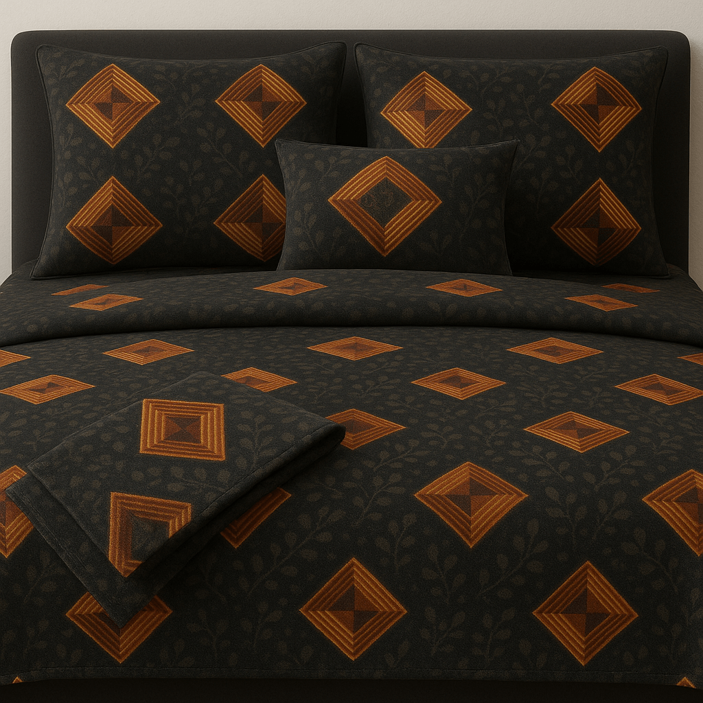 Introducing the Bedzzy Premium Black & Gold Geometric Bedsheet Set – a perfect blend of luxury, elegance, and comfort. Designed with stunning golden diamond patterns on a rich black base, this bedsheet instantly enhances your bedroom décor.